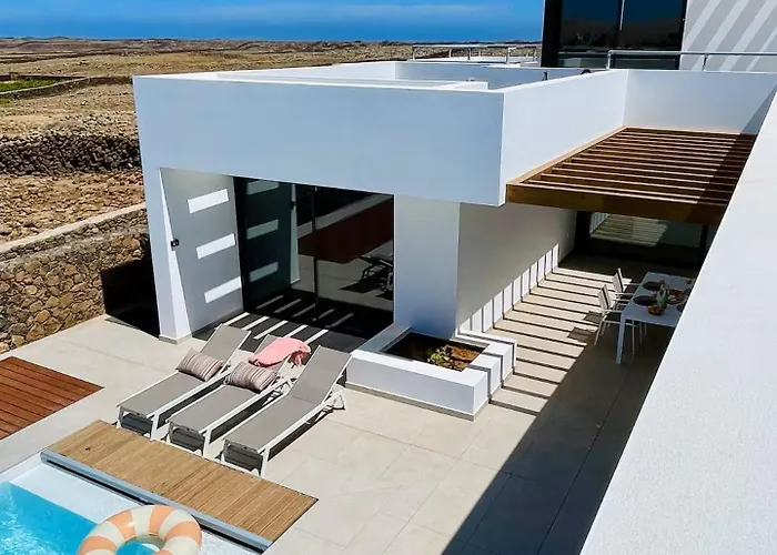 A Casa Horizon, Luxury Villa 8P, Heated Pool, 4Br 4Ba, Volcano Views - Quiet & Stylish, Lajares está localizada 6 km de Faro el toston e dispõe de piscina privada, garantindo uma estadia relaxante.